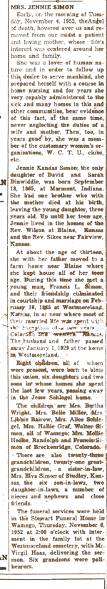 Married Francis L. Simon February 16, 1885 in Westmoreland, KS